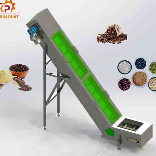 Băng tải có cấu trúc uốn cong theo hình chữ Z, cho phép vật liệu di chuyển theo chiều dọc từ thấp lên cao.Thiết kế này giúp tận dụng tối đa không gian thẳng đứng, phù hợp với các nhà xưởng có diện tích mặt bằng hạn chế.