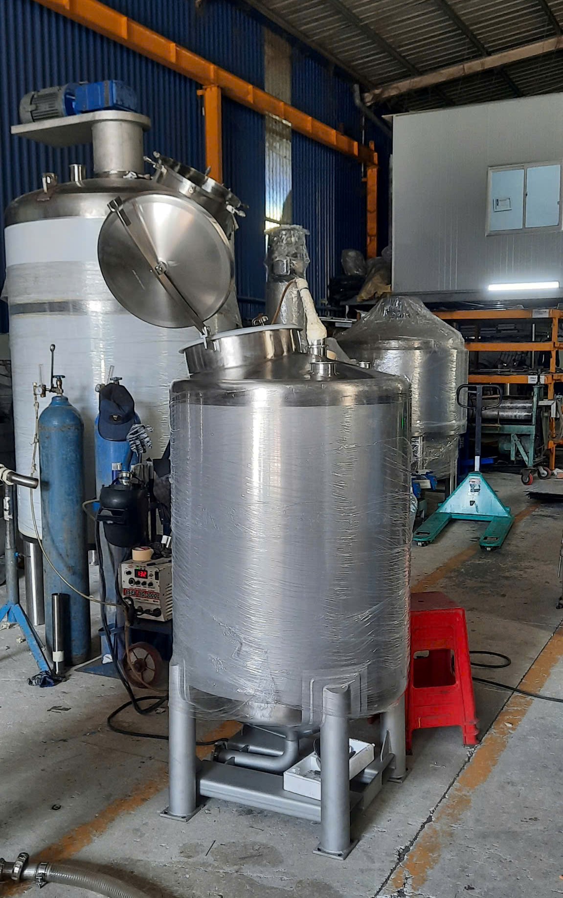 - Bồn khuấy có gia nhiệt: Được trang bị hệ thống gia nhiệt như áo gia nhiệt (jacketed heating) hoặc thanh nhiệt (heating elements) để kiểm soát và điều chỉnh nhiệt độ của nguyên liệu trong quá trình khuấy trộn. Chức năng chính của loại bồn này là làm nóng, nấu chảy, hoặc duy trì nhiệt độ ổn định cho nguyên liệu, giúp đảm bảo quá trình sản xuất diễn ra theo đúng yêu cầu kỹ thuật. Loại bồn này thường được sử dụng trong các ngành công nghiệp đòi hỏi kiểm soát nhiệt độ như thực phẩm, mỹ phẩm, dược phẩm, và hóa chất.