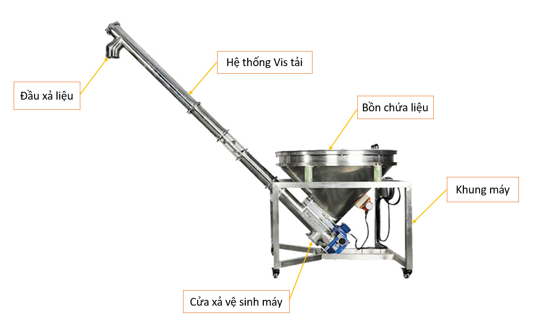 Vít tải cấp liệu (vibratory feeder) là thiết bị được sử dụng để cấp liệu tự động các vật liệu và sản phẩm trong quy trình sản xuất. Cấu tạo chính của vít tải cấp liệu bao gồm các thành phần sau: